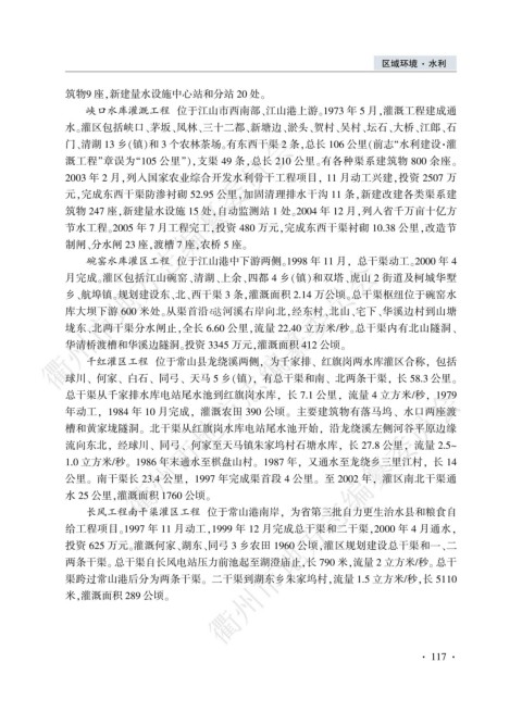 碗窑水库灌区工程 位于江山港中下游两侧遥1998 年 11 月袁 总干渠动工遥2000 年 4