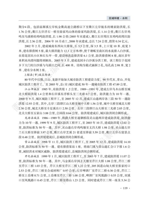 鸣至乌溪桥的鸡鸣防洪堤袁长 1.98 公里渊2005 年末建成冤袁衢江右岸周庄至鸡鸣的周庄防