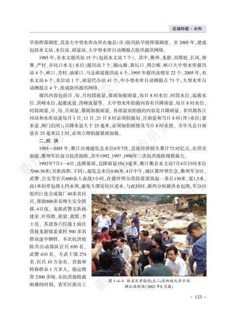 资 2300 多吨遥在抗洪抢险最 图 1-4-4 副省长章猛进(左二)在柯城九华乡指