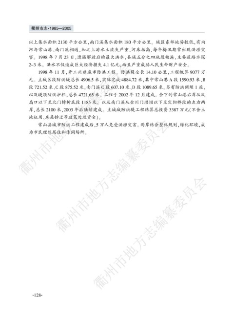 1998 年 11 月袁开工兴建城市防洪工程遥 防洪堤全长 14.10 公里袁工程概算 9077 万