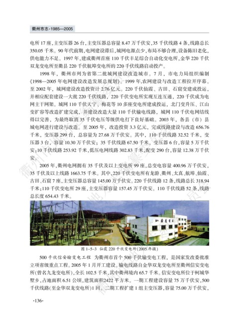 图 1-5-3 仙霞 220 千伏变电所渊2005 年摄冤