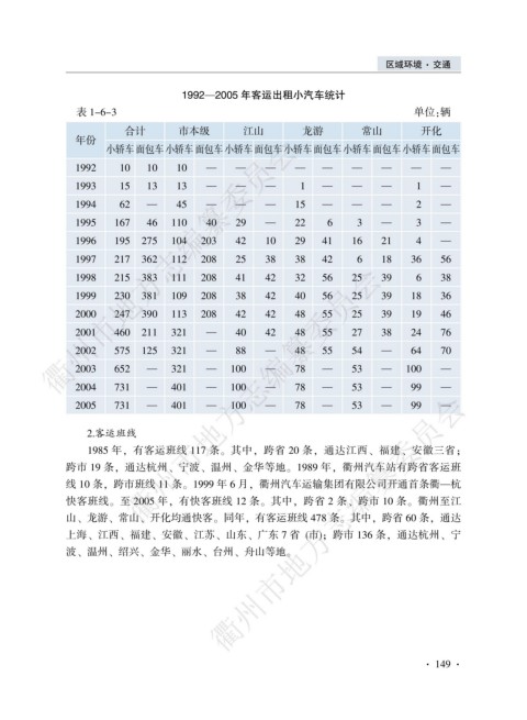 线 10 条袁 跨市班线 11 条遥 1999 年 6 月袁 衢州汽车运输集团有限公司开通首条衢要杭