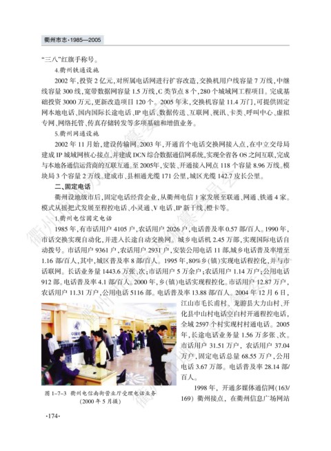 图 1-7-3 衢州电信南街营业厅受理电话业务 1998 年袁 开通多媒体通信网渊163/