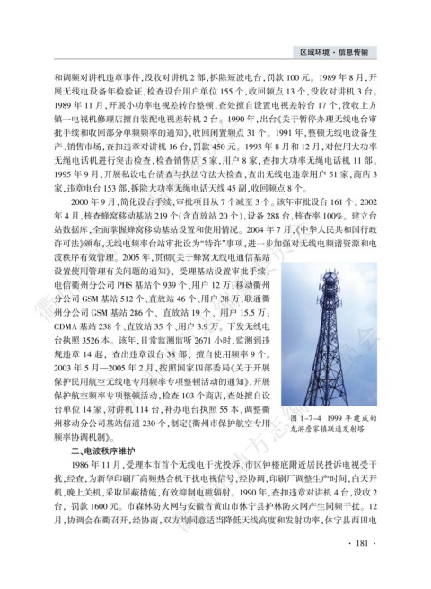 机袁晚上关机袁采取屏蔽措施袁有效抑制电磁辐射遥 1990 年袁查扣违章对讲机 4 台袁没收 2
