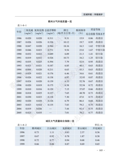 二氧化硫 氮氧化物 总悬浮颗粒 降尘 酸雨频率 质量等级