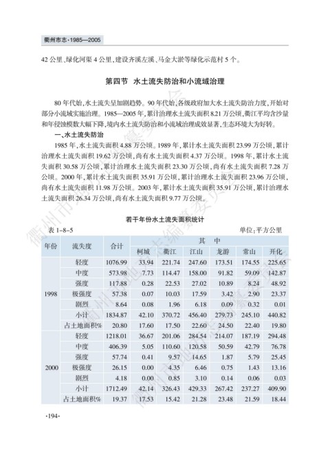 部分小流域实施治理遥 1985要2005 年袁累计治理水土流失面积 8.21 万公顷袁衢江平均含沙量
