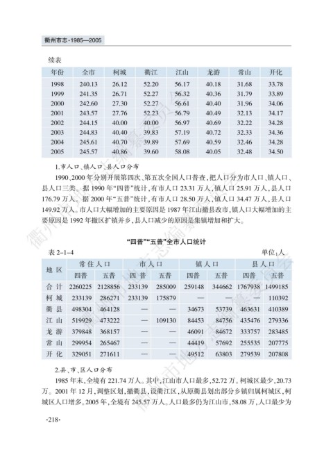 城区人口增多遥2005 年袁全境有 245.57 万人遥人口最多仍为江山市袁58.08 万袁人口最少为