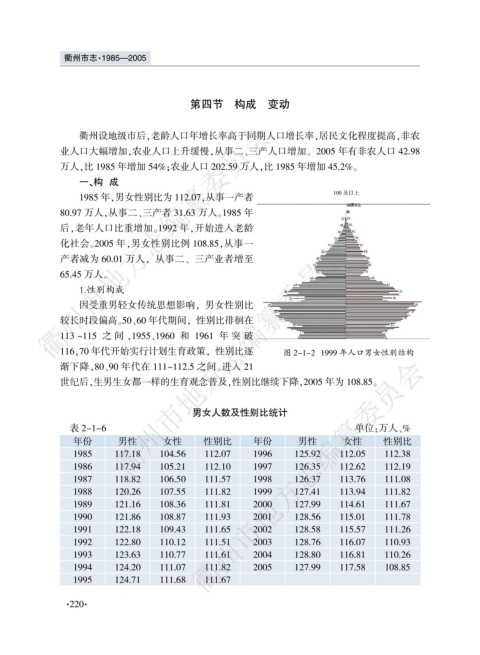 116袁70 年代开始实行计划生育政策袁 性别比逐 图 2-1-2 1999 年人口男女性别结构