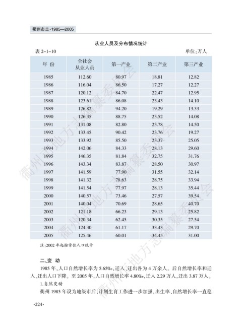 1985 年袁人口自然增长率为 5.65译袁迁入尧迁出各为 4 万余人遥 后自然增长率和迁
