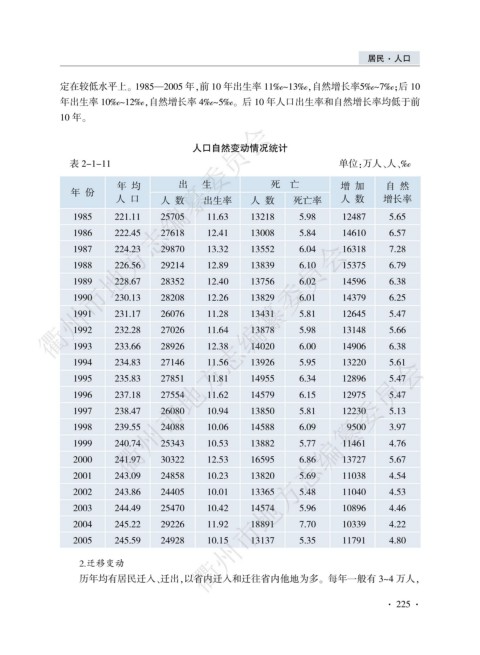 定在较低水平上遥 1985要2005 年袁前 10 年出生率 11译耀13译袁自然增长率5译耀7译曰后 10