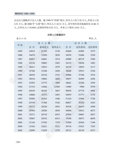 且迁出人数略多于迁入人数遥 据 1990 年野四普冶统计袁外出人口有 5.76 万人袁外来人口有
