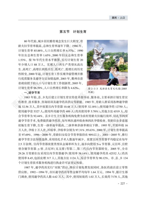 计划生育率 96.39%袁人口自然增长率降为 4.62译遥 图 2-1-3 龙游县生育文化园渊2005
