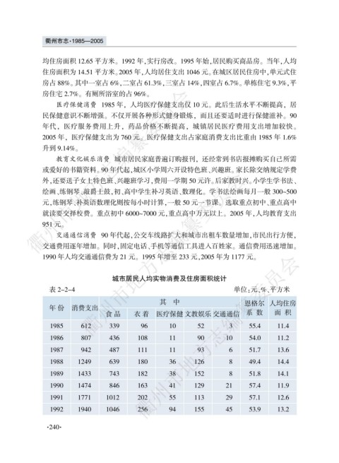 年 份 消费支出 食 品 衣 着 医疗保健 文教娱乐 交通通信 恩格尔 人均住房