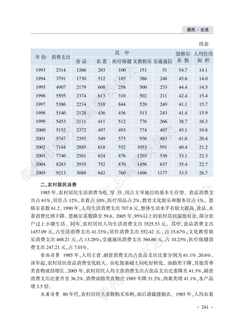 格尔系数 61.2遥 1990 年袁人均生活消费支出 707.8 元袁整体生活水平有较大提高袁食品尧衣