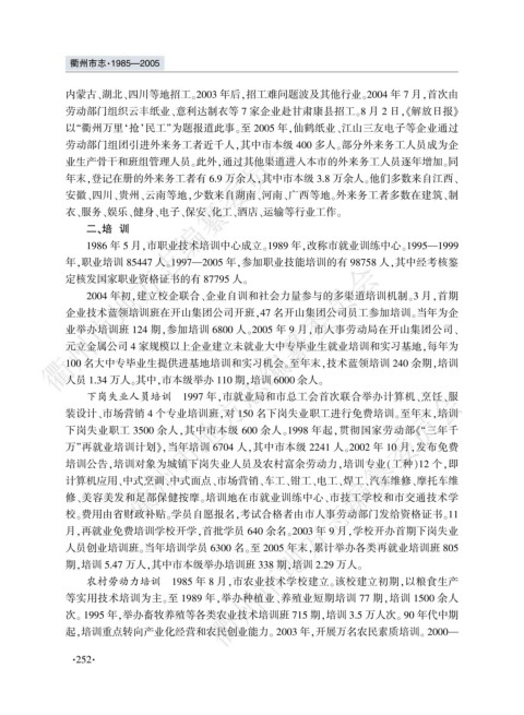 年袁职业培训 85447 人遥1997要2005 年袁参加职业技能培训的有 98758 人袁其中经考核鉴