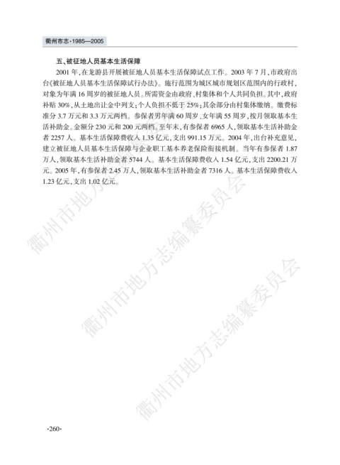 2001 年袁在龙游县开展被征地人员基本生活保障试点工作遥 2003 年 7 月袁市政府出
