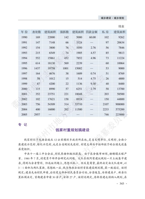 年 份 查处数 建筑面积 强拆数 建筑面积 罚款金额 私 房 建筑面积