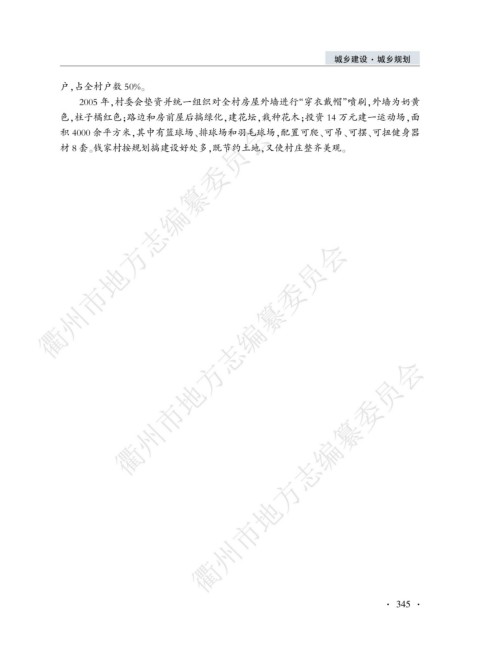 城乡建设窑城乡规划 户袁占全村户数 50%遥 2005 年袁村委会垫资并统一组织对全村房屋外墙进行野穿衣戴帽冶喷刷袁外墙为奶黄 ````ᗭᇜ൧ֹٚᆽщቈჴ߶ 色袁柱子橘红色曰路边和房前屋后搞绿化袁建花坛袁栽种花木曰投资 14 万元建一运动场袁面 积 4000 余平方米袁其中有篮球场尧排球场和羽毛球场袁配置可爬尧可吊尧可摆尧可扭健身器 材 8 套遥钱家村按规划搞建设好处多袁既节约土地袁又使村庄整齐美观遥 ``ᗭᇜ൧ֹٚᆽщቈჴ߶ ᗭᇜ൧ֹٚᆽщቈჴ߶` 窑 345 窑