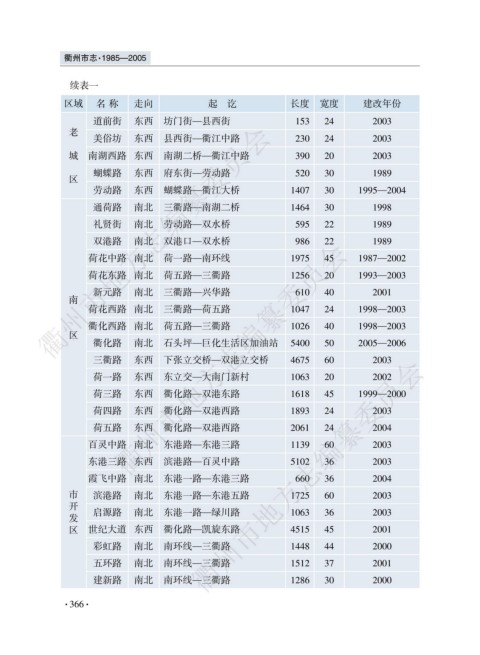 城 南湖西路 东西 南湖二桥要衢江中路 390 20 2003