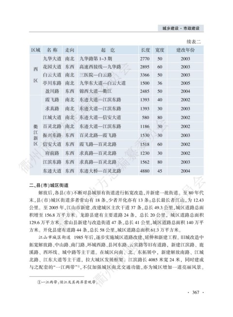 公里遥 至 2005 年袁江山市新建尧改建城区主次干道 37 条袁总长 49.3 公里袁城区道路总面