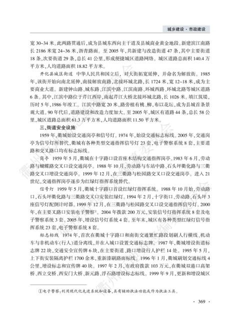 1959 年袁衢城始设交通岗亭和信号灯遥 1974 年袁始设交通标志标线遥 2005 年袁交通岗