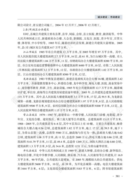 楼尧体育馆尧中小学校等遥 1985 年后袁随着经济社会发展袁新建公共建筑大量增加遥 2005
