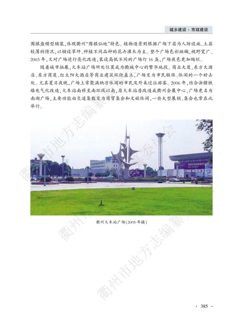处遥 尤其夏日夜晚袁广场上常聚满纳凉休闲的市民及外来过往游客遥 2006 年袁结合浙赣铁