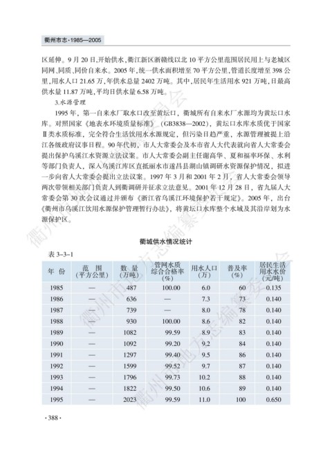 里袁用水人口 21.65 万袁年供水总量 2402 万吨遥 其中袁居民年生活用水 921 万吨袁日最高
