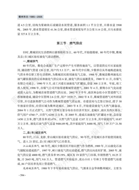 龙游城区供气 1988 年下半年始有液化气供应遥 气源来自金华和衢州城区遥 主要为
