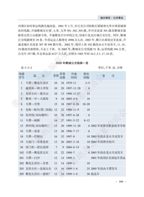 19 路改经新桥街袁不走上下街遥 至 2005 年袁衢城有公交线路 51 条袁运营线路 394 公里袁