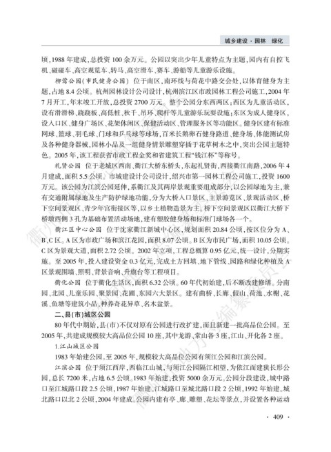 2005 年袁共建成规模较大高品位公园 10 座袁其中龙游尧常山各 3 座袁江山尧开化各 2 座遥
