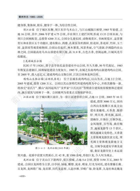江滨公园 位于城区衢江南岸袁为一依江而建带状公园袁占地 11 公顷遥 2003 年 10 月