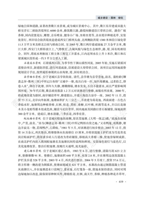 桥至浮石二桥防洪堤坝长 6000 余米袁修筑衢江路袁路堤间修建沿江带状公园遥 路旁广植