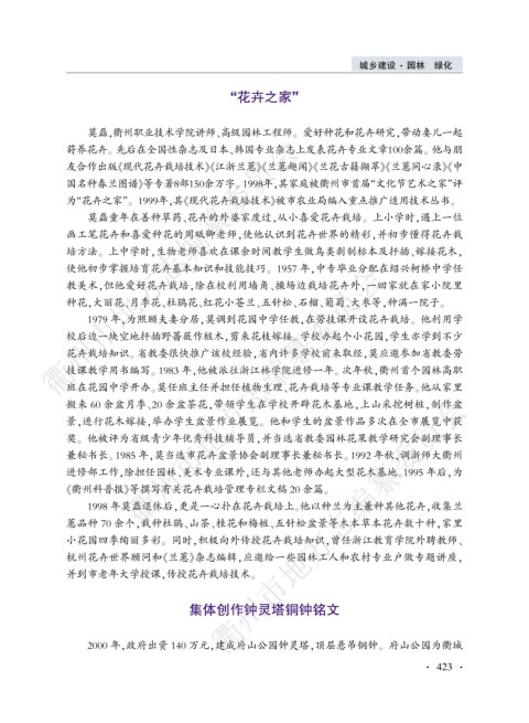 莫磊袁衢州职业技术学院讲师尧高级园林工程师遥 爱好种花和花卉研究袁带动妻儿一起