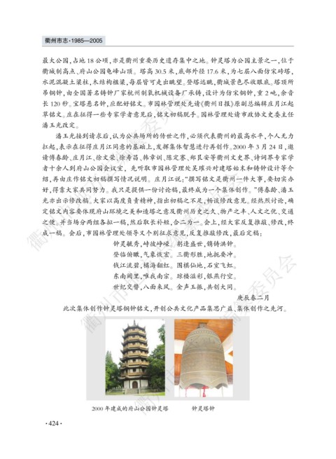 长 120 秒遥宝塔悬名钟袁应配好铭文遥市园林管理处先请叶衢州日报曳原副总编辑庄月江起