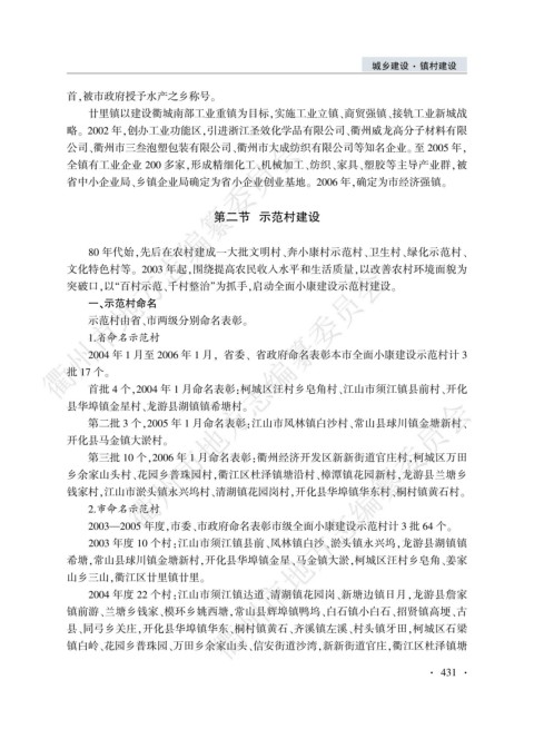 2004 年 1 月至 2006 年 1 月袁 省委尧 省政府命名表彰本市全面小康建设示范村计 3