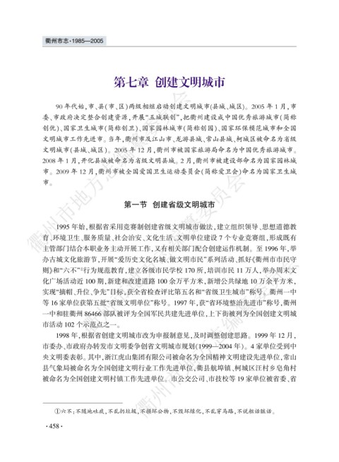 等 16 家单位获第五批野省级文明单位冶称号遥 1997 年袁获野省环境整治先进市冶称号袁衢州