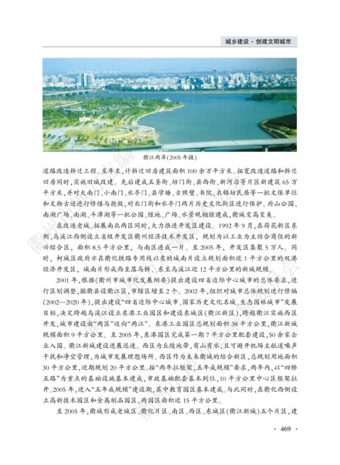 至 2005 年袁衢城形成老城区尧衢化片区尧南区尧西区尧东城区渊衢江新城冤五个片区袁建