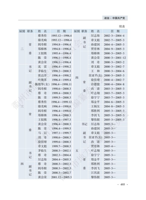 委 王似熊 1995.4要1996.4 郑樟林 2000轧3要2005轧3