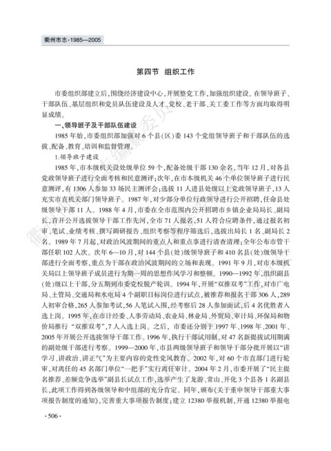 1985 年始袁市委组织部加强对 6 个县渊区冤委 143 个党组领导班子和干部队伍的选