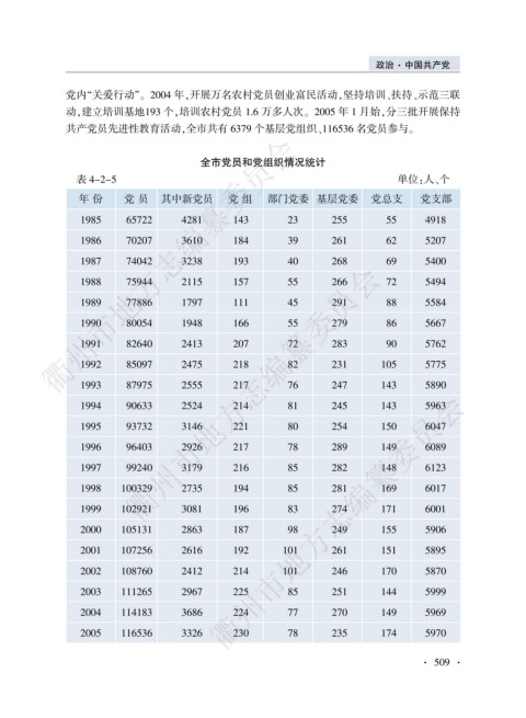 年 份 党 员 其中新党员 党 组 部门党委 基层党委 党总支 党支部