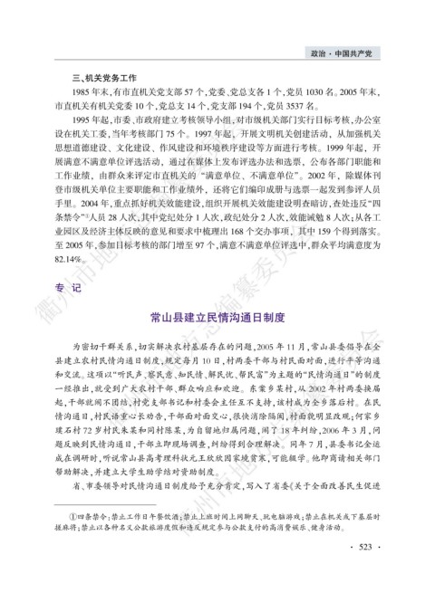 1985 年末袁有市直机关党支部 57 个袁党委尧党总支各 1 个袁党员 1030 名遥 2005 年末袁
