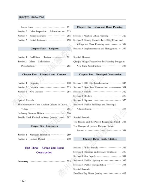 Section 4 Social Insurance 258 Section 1 Quzhou Urban Planning 327