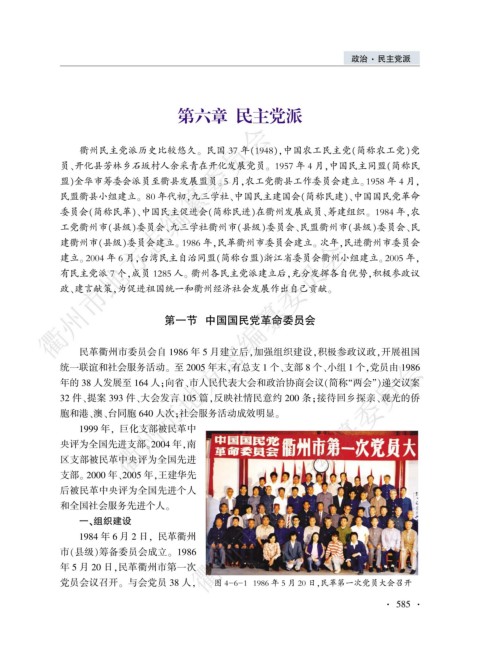建衢州市渊县级冤委员会建立遥 1986 年袁民革衢州市委员会建立遥 次年袁民进衢州市委员会