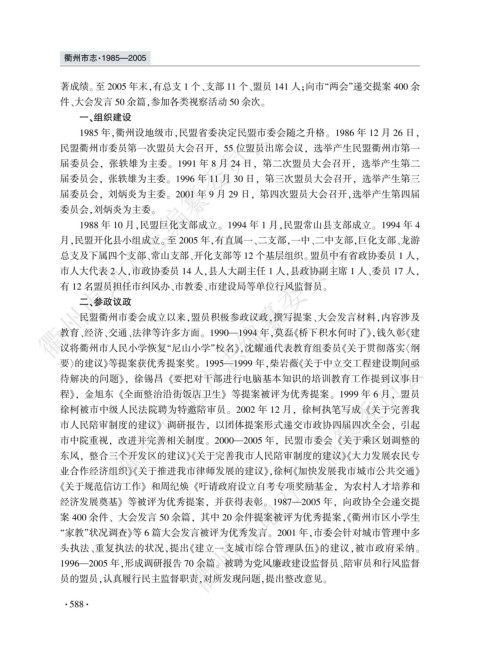 月袁民盟开化县小组成立遥 至 2005 年袁有直属一尧二支部袁一中尧二中支部袁巨化支部尧龙游