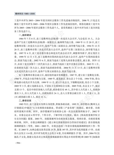 2005 年 3 月袁建立龙游县总支袁下设医卫支部和综合支部遥 2005 年底袁有总支 2 个袁基层