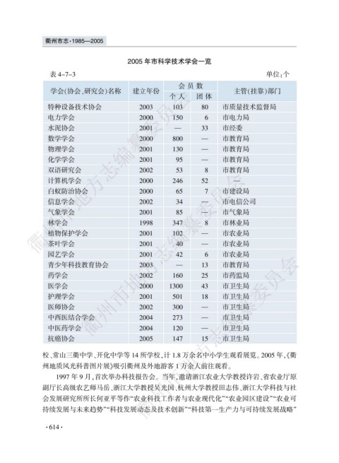 2005 年市科学技术学会一览