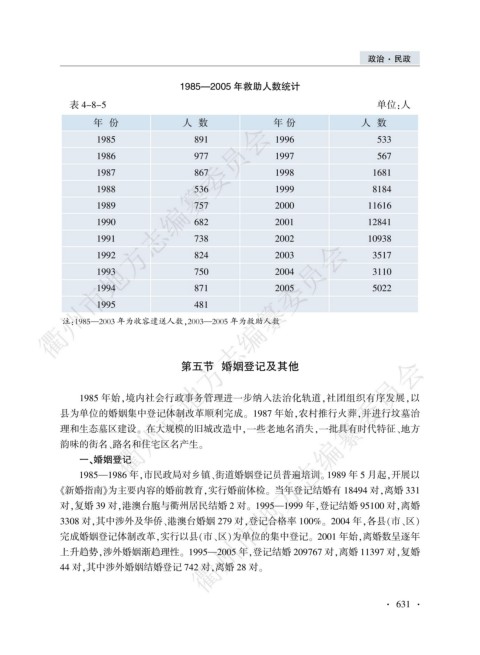 注院1985要2003 年为收容遣送人数袁2003要2005 年为救助人数