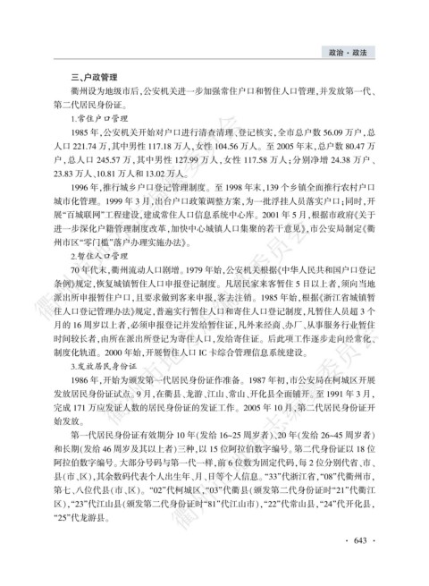 衢州设为地级市后袁公安机关进一步加强常住户口和暂住人口管理袁并发放第一代尧
