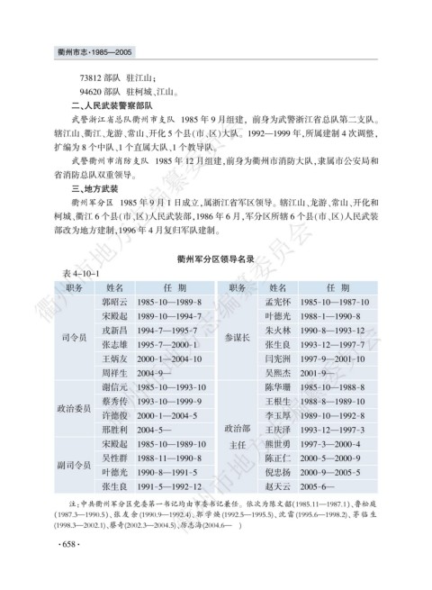 注院中共衢州军分区党委第一书记均由市委书记兼任遥 依次为陈文韶渊1985.11要1987.1冤尧鲁松庭